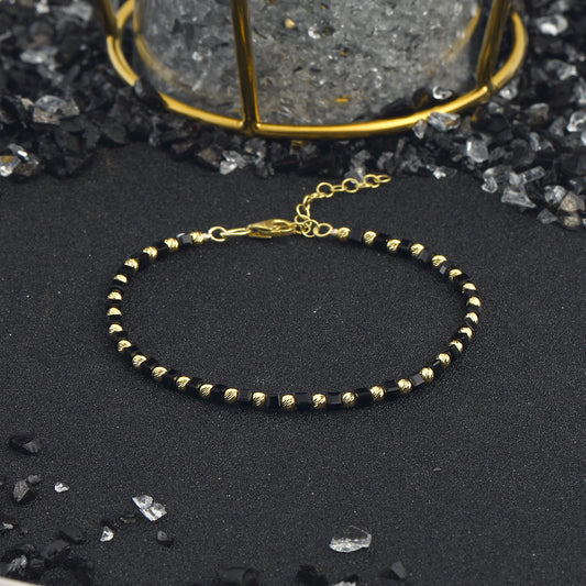Crystals Onix, Silver Bead Bracelet 14k Gold Plated 925 Sterling Silver Jewelry