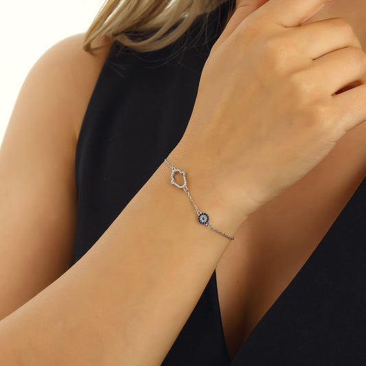 Dainty Evil Eye and Hamsa-Hand of Fatima Fluid Chains silver bracelets 925 Sterling Silver Jewelry