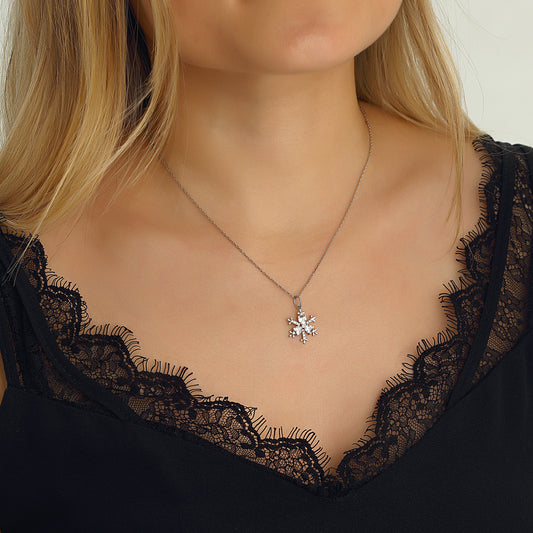 Crystal Snowflake Necklace 925 Sterling Silver Jewelry